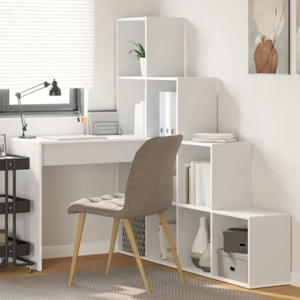 Detta hörnskrivbord med förvaring är en smart lösning för att maximera arbetsytan hemma eller i studiet. Den moderna stilen kombinerar enkelt utseende med grym funktionalitet och boostar din produktivitet. Med rena linjer och en slät yta ger det en fräsch och praktisk känsla som passar i alla miljöer. Den hörnformade designen sparar plats vilket är perfekt i små rum, samtidigt som det erbjuder bra utrymme för flera skärmar eller arbetsstationer.