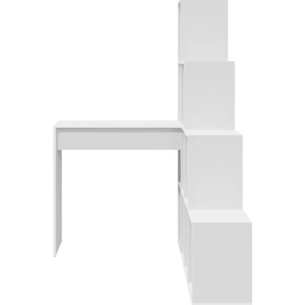 - Flexibel uppsättning Skrivbordet är otroligt flexibelt och kan sättas upp på två olika sätt för att passa dina behov. Oavsett om du vill ha mer arbetsyta eller fler hyllor, kan du enkelt anpassa det efter din kontorslayout.