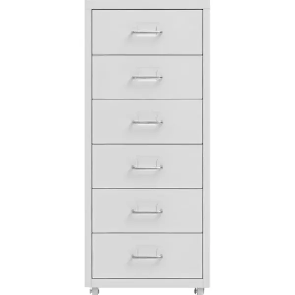 Detta kontorsskåp är tillverkat av metall, vilket gör det hållbart och lätt att rengöra. Detta arkivskåp har 5 lådor och du kan sätta namnlappar i metallhandtagen, vilket gör att du snyggt kan sortera dina dokument i olika kategorier. Tack vare sina 4 hjul är detta skåp lätt att flytta runt. Det kommer att passa din kontorsinredning tack vare sin ikoniska design. Dessutom är skåpet lätt att rengöra med en fuktig trasa.