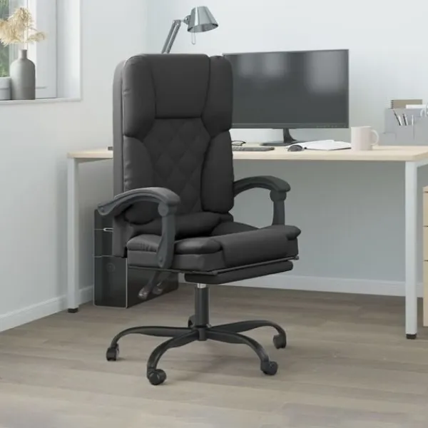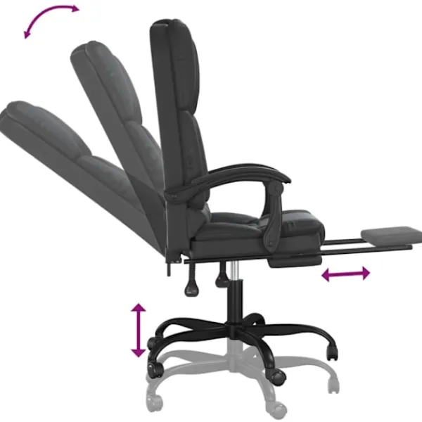 Denna kontorsstol med massage är en perfekt kombination av elegans och komfort. Den blir ett blickfång på ditt kontor. Hållbart konstläder: Premium konstläder är ett högst slitstarkt material. Den är fläckbeständig, vilket gör den enkel att rengöra med en fuktig trasa. Den släta ytan har också ett lyxigt utseende.Massagefunktion: Massagepunkten i ryggen lindrar effektivt din trötthet och gör dig mer avslappnad på jobbet.Justerbart ryggstöd och höjd: Den är speciellt utformad med en lutningsfunktion så att du kan justera ryggstödet och fotstödet enligt dina behov. Använd spaken för att justera höjden efter behag.Praktisk design: Den 360 graders svängbara designen möjliggör ett ökad flexibilitet. Dessutom är den enkel att flytta runt tack vare hjul.Robust och stabil ram: Ramen i metall och plywood säkerställer robusthet och stabilitet. Bra att känna till:Varje produkt levereras med en monteringsmanual i lådan för enkel montering.Denna produkt har en USB-kontakt, men den certifierade 5V USB-strömkällan ingår inte.
