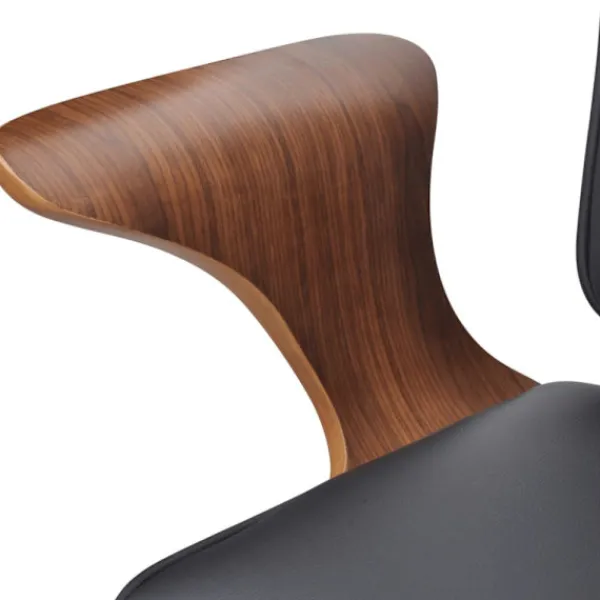 Den sits och rygg är ergonomiskt utformade och klädda i mjukt, stoppat, högkvalitativt konstläder, vilket gör stolen mycket bekväm. Ramen i böjträ bidrar till dess unika skönhet och stil.