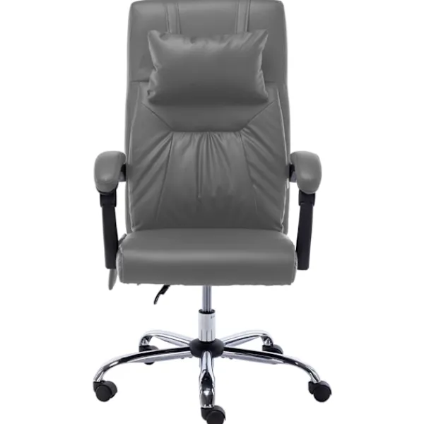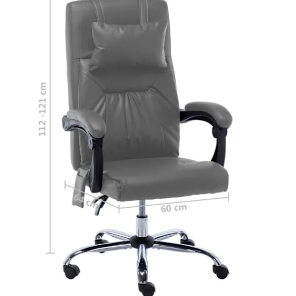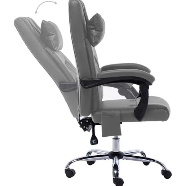Denna kontorsstol har både massage- och avslappningsfunktion och kommer att bli ett utmärkt komplement till ditt kontor. Den är ergonomiskt utformad för att ge dig full komfort under din hektiska arbetsdag. Fåtöljen har hög rygg och en nackkudde med enpunktsmassage, böjda armstöd och tjockt vadderad sits och ger dig därför bra komfort under långa arbetspass. Den är höj- och sänkbar, vilket gör att du kan anpassa den till skrivbordshöjden och därmed uppnå bästa komfort, även för ryggen. Denna vilstol är utrustad med nylonhjul så att du enkelt att förflytta dig. Stolen kan lutas från 95° till 135° så du smidigt kan hitta ditt bästa läge för avkoppling.
