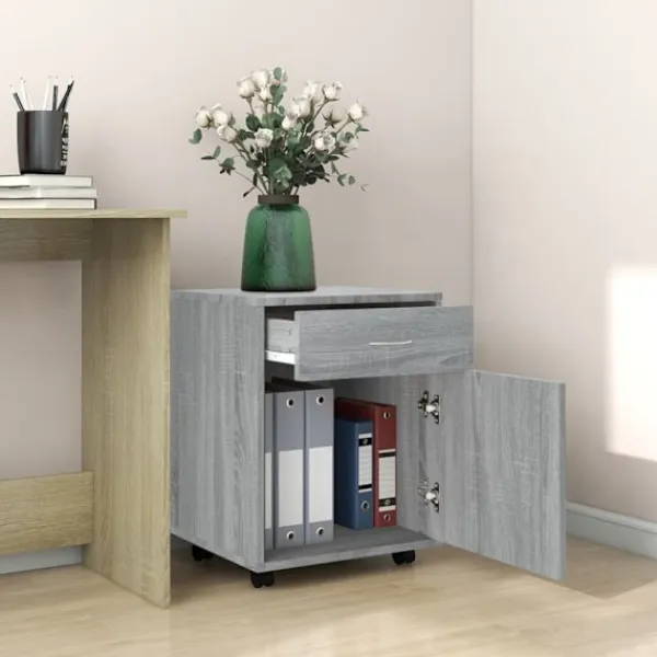 - Rullande design: Tack vare hjulen, varav två är låsbara, är rullskåpet särskilt mobilt och universellt.