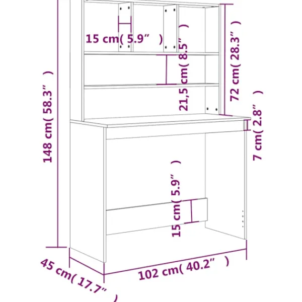 Detta skrivbord med hyllor blir ett praktiskt såväl som ett dekorativt val för ditt bostadsutrymme! Hållbart material: Det konstruerade träet är av exceptionell kvalitet med slät yta och är också starkt, stabilt och fuktbeständigt.Gott om förvaring: Detta skrivbord har gott om lagringsutrymme för att organisera alla dina mappar, dokument, påminnelser och PC-utrustning snyggt och inom räckhåll!Platsbesparande design: Tack vare sin kompakta design är studiebordet perfekt för alla små kontor, sovsalar eller små hus, och även om du bara föredrar att hantera det utrymme du har!Lätt att rengöra ytan: Skrivbordet är lätt att rengöra med en fuktig trasa. Varning:För att förhindra att den välter måste denna produkt användas med den medföljande monteringsanordningen för vägg Observera:Varje produkt levereras med en monteringsmanual i lådan för enkel montering.