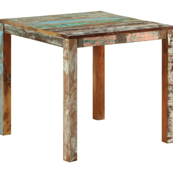 Det här matbordet i trä utstrålar en lantlig charm i din matsal eller ditt kök. Matbordet är handgjort av massivt återvunnet trä, en kombination av återvunna träslag som teak, mangoträ, furu, bok etc. Dessa träslag återvinns från gamla byggnader som fabriker, skjul och båtar. Detta gör det till ett fantastiskt miljövänligt alternativ inom möbeltillverkning. Eftersom varje bit är handgjord varierar färgerna med många blå, gröna, kremerade och ibland orange, röda och rosa nyanser. Detta innebär till och med att varje exemplar är unikt! OBS: Färger och ådringar varierar från möbel till möbel, vilket gör varje produkt unik. Leveransen är slumpartad. Leveransen är slumpmässig, vilket säkerställer varje produkts exklusivitet och individualitet.