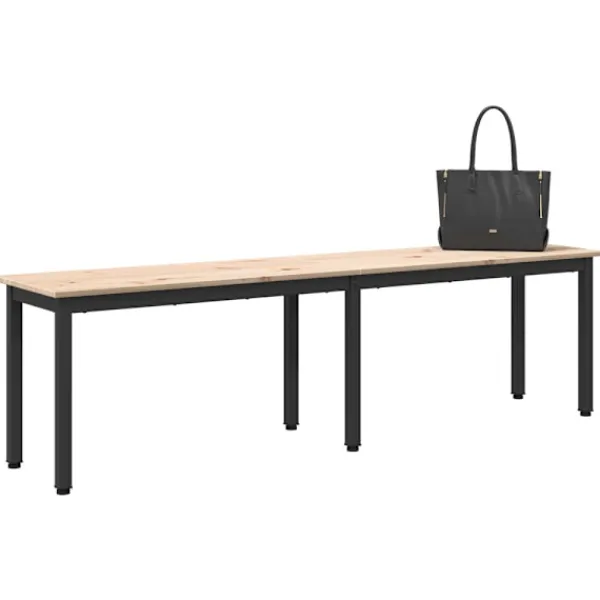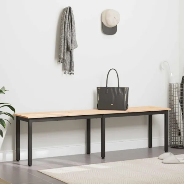 Den här moderna bänken förenar stil och funktion. Den passar perfekt som sittlösning i matsalar, på verandor eller i entréer. Med sina enkla linjer och minimalistiska design ger den en samtida känsla som passar många olika inredningar. Tillverkad av hållbart massivt tall som står på robusta fyrkantiga metallben, är den klar för både – fest eller vardag.