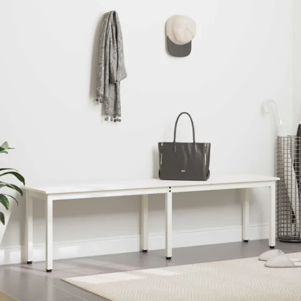Den här moderna bänken förenar stil och funktion. Den passar perfekt som sittlösning i matsalar, på verandor eller i entréer. Med sina enkla linjer och minimalistiska design ger den en samtida känsla som passar många olika inredningar. Tillverkad av hållbart massivt tall som står på robusta fyrkantiga metallben, är den klar för både – fest eller vardag.