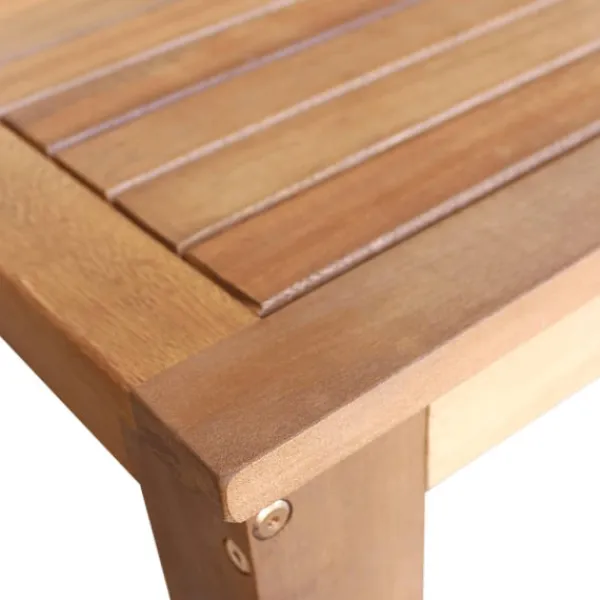 Både bordet och stolarna är tillverkade i massivt akaciaträ med en vacker oljad yta och är robusta och väderbeständiga. Trästrukturen gör dem dessutom hållbara, och tack vare stolarnas fot- och ryggstöd är de mycket bekväma att sitta på.