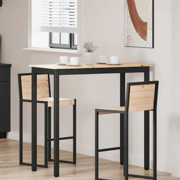 Det här moderna barbordet, med sina rena linjer och nedtonade elegans, ger liv till både matsalar och kök. Den släta ytan är både enkel och funktionell för dagligt bruk och skapar en varm men samtida atmosfär, perfekt för både familje- och festmåltider. Med en robust metallstruktur förenar bordet industriell stil med hemtrevnad, vilket gör det till en fin mittpunkt för dem som gillar minimalistiska och stiliga designer.