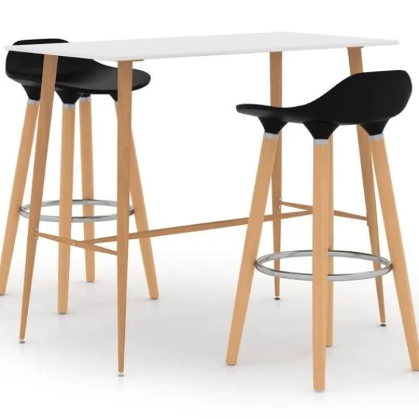 Samtala med vänner eller ta en drink medan du kopplar av på denna snygga bargrupp! Barbordet har en MDF-bordsskiva och starka metallben med träutseende, vilket gör det enkelt att rengöra. Dess ABS-sitsar och massiva ben i bokträ, gör dem robusta och stabila. Det inbyggda fotstödet ger extra stöd.
