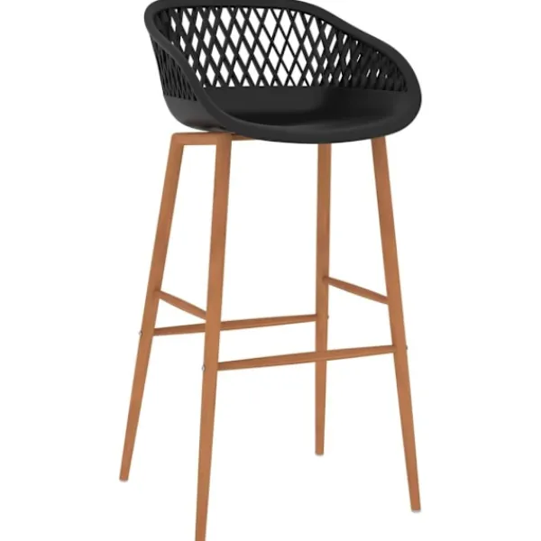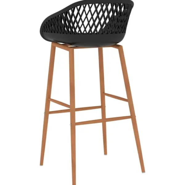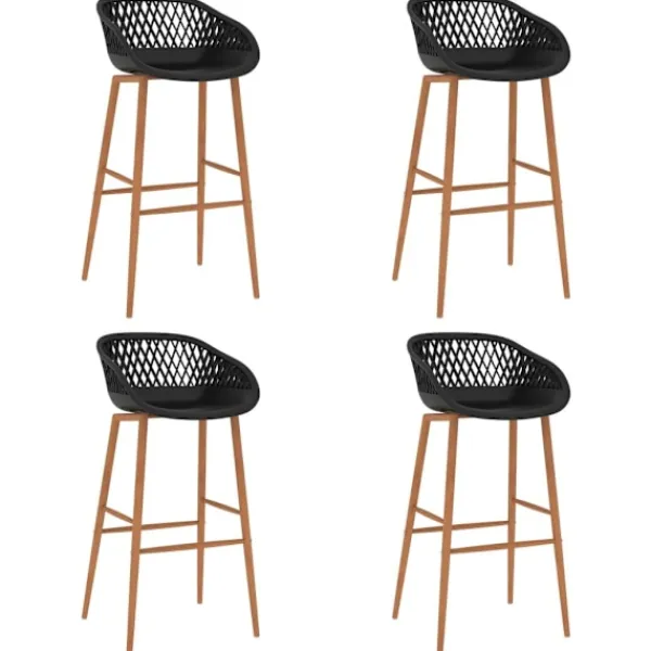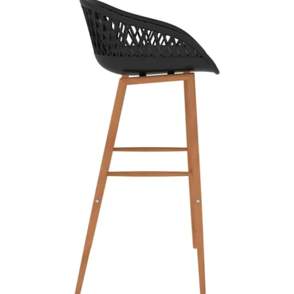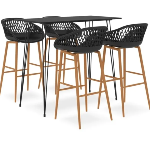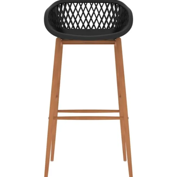 Denna bargrupp med modern design passar in i moderna hem, trädgårdar, barer eller restauranger. Dess stilrena och samtida design kompletterar din inredning. Bordsskivan är tillverkad i MDF, som är lätt att torka av. Den pulverlackerade metallramen bidrar till barbordets stabilitet och hållbarhet. Barstolarna har en ergonomisk sits med lågt ryggstöd med meshdesign. De är tillverkade av robust PP och stöds av starka metallben med träutseende, vilket gör dem stabila och hållbara.