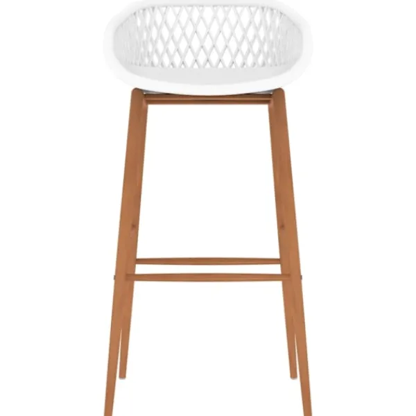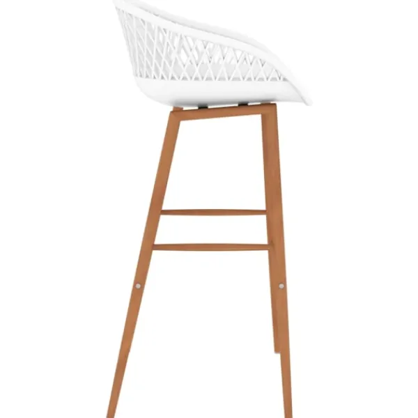 Denna bargrupp med modern design passar in i moderna hem, trädgårdar, barer eller restauranger. Dess stilrena och samtida design kompletterar din inredning. Bordsskivan är tillverkad i MDF, som är lätt att torka av. Den pulverlackerade metallramen bidrar till barbordets stabilitet och hållbarhet. Barstolarna har en ergonomisk sits med lågt ryggstöd med meshdesign. De är tillverkade av robust PP och stöds av starka metallben med träutseende, vilket gör dem stabila och hållbara.