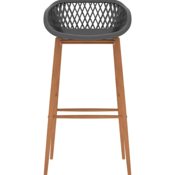 Denna bargrupp med modern design passar in i moderna hem, trädgårdar, barer eller restauranger. Dess stilrena och samtida design kompletterar din inredning. Bordsskivan är tillverkad i MDF, som är lätt att torka av. Den pulverlackerade metallramen bidrar till barbordets stabilitet och hållbarhet. Barstolarna har en ergonomisk sits med lågt ryggstöd med meshdesign. De är tillverkade av robust PP och stöds av starka metallben med träutseende, vilket gör dem stabila och hållbara.