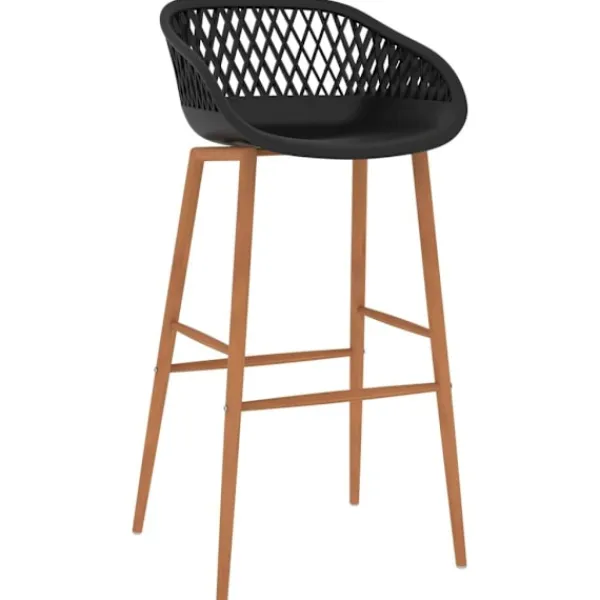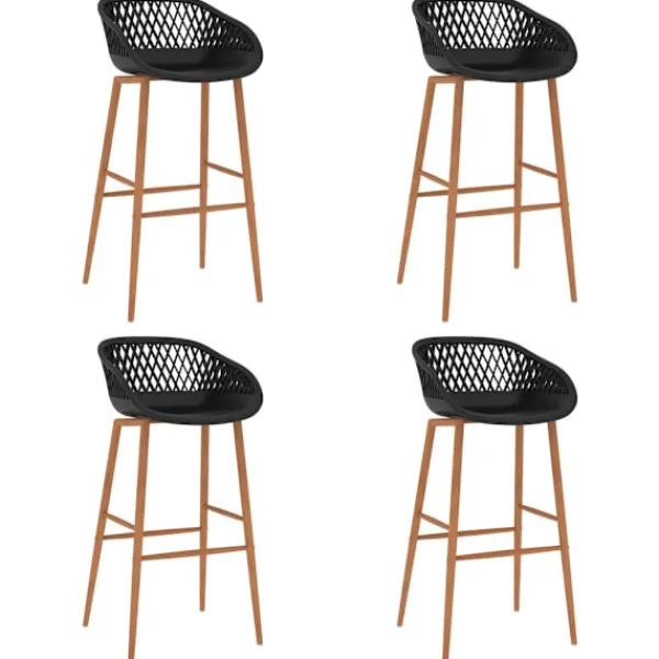 Denna bargrupp med modern design passar in i moderna hem, trädgårdar, barer eller restauranger. Dess stilrena och samtida design kompletterar din inredning. Vårt barbord har en hållbar bordsskiva i MDF och starka metallben med träutseende. Barstolarna har en ergonomisk sits med integrerat lågt ryggstöd med meshdesign. De är tillverkade av PP och stöds av starka metallben med träutseende, vilket gör stolarna robusta och hållbara.