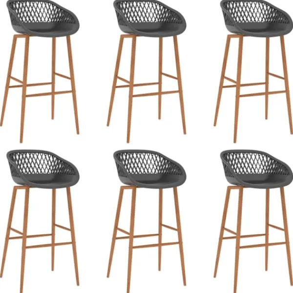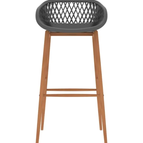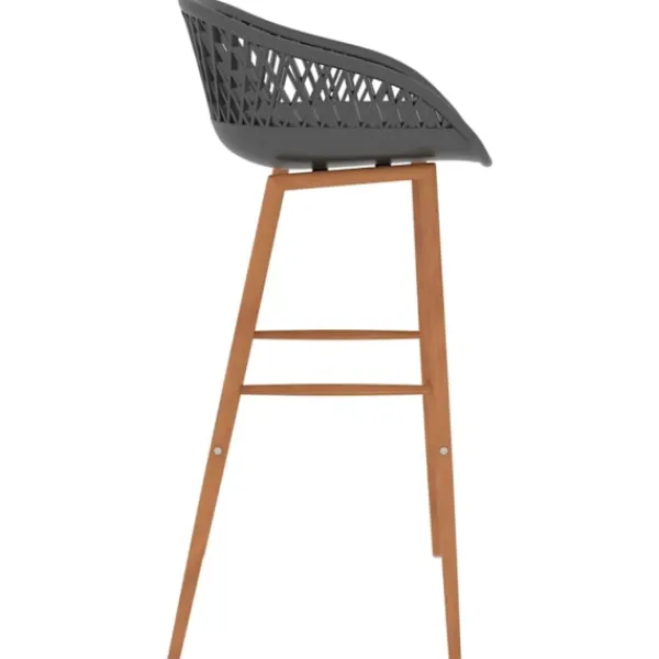 Denna bargrupp med modern design passar in i moderna hem, trädgårdar, barer eller restauranger. Dess stilrena och samtida design kompletterar din inredning. Vårt barbord har en hållbar bordsskiva i MDF och starka metallben med träutseende. Barstolarna har en ergonomisk sits med integrerat lågt ryggstöd med meshdesign. De är tillverkade av PP och stöds av starka metallben med träutseende, vilket gör stolarna robusta och hållbara.