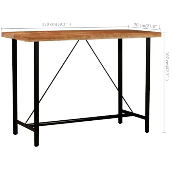 Dessa barmöbler har ett industriellt utseende och kommer att bli ett utmärkande komplement i hemmet, baren eller restaurangen. Barbordet är tillverkat i massivt återvunnet trä. Återvunnet trä har karaktärsdrag från olika typer av trä såsom teakträ, mangoträ, akaciaträ med mera, som redan är åldrat och torkat, så det varken krymper eller böjs. De starka stålbenen gör barbordet väldigt stadigt, hållbart och bidrar till dess spektakulära industriella stil. Det perfekta hantverket garanterar att varje steg i processen utförs med största omsorg, från polering till lackering. Klädseln i äkta läder är mjuk att ta på och gör barstolarna mycket hållbara. Det mjuka getskinnet med fina diamantformade sömmar ger en bekväm sittupplevelse medan de massiva järnbenen med fotstöd gör stolarna stadiga och hållbara. Vår bargrupp är enkel att montera. Vid leverans medföljer 1 bord och 4 stolar i äkta läder. Viktigt: Färger och träfibrer varierar från möbel till möbel, vilket gör varje produkt unik. Leveransen är slumpartad, vilket säkerställer varje produkts exklusivitet och individualitet.