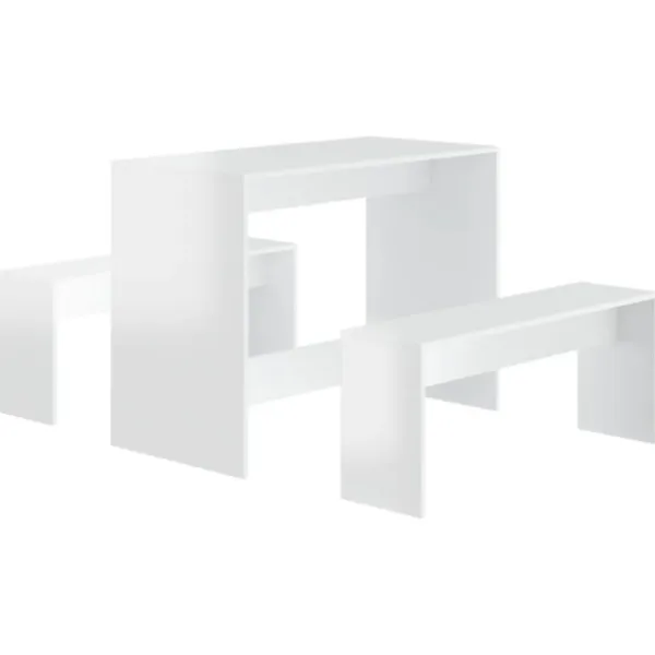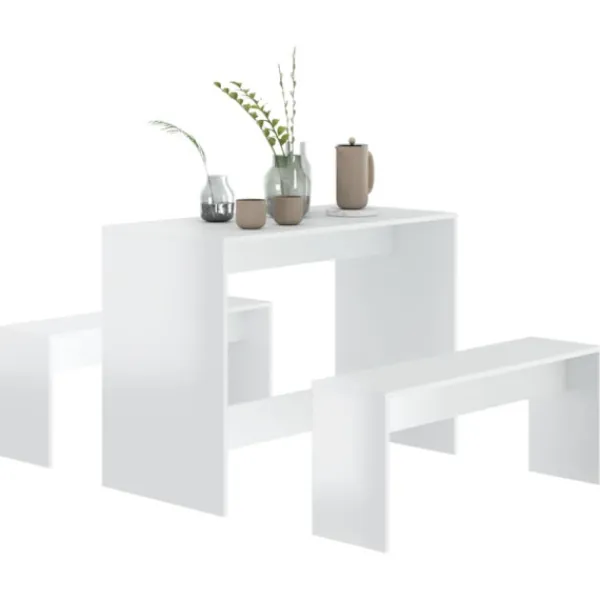 Konstruktionen av detta matsalsset säkerställer dess stabilitet, hållbarhet och långvariga service. Bordsskivan är perfekt att placera snacks, drycker, vaser, fruktskålar eller andra dekorativa föremål på. Tack vare det stora sittutrymmet som bänkarna erbjuder, är detta set också perfekt när du har fest för vänner och familj. Dessutom är den enkel att rengöra med en fuktig trasa.