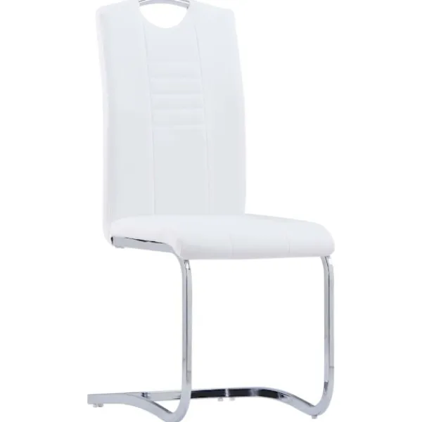 Vår matgrupp har en elegant och modern design och passar perfekt i moderna hem, matrum eller kommersiella restauranger. Dess stilrena och moderna design kommer att komplettera din inredning. Bordet har en slät bordsskiva i härdat glas som är enkel att rengöra med en fuktig trasa. Den pulverlackerade metallramen bidrar till dess massiva konstruktion och gör den mycket stabil och hållbar. Stolarna är klädda i mjukt konstläder och är tjockt stoppade för maximal komfort. Dess ergonomiska design gör matstolen mycket bekväm att sitta på. Tack vare den kromade stålramen är stolarna robusta och stabila. Dessutom har stolarna ett handtag i ryggstödet så att de enkelt kan flyttas. Matgruppen är enkel att montera. Vår matgrupp är perfekt när du bjuder in familj och vänner på middagsbjudningar.