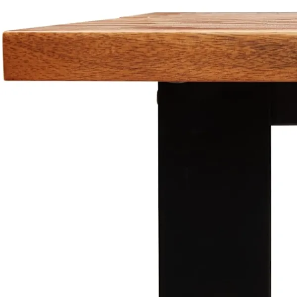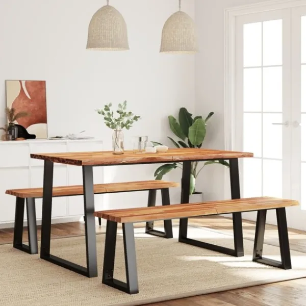 Den har en elegant design som blir en mittpunkt i din matsal eller kök. Massivt akaciaträ: Bänkens sits och matbordet är tillverkade av massivt akaciaträ. Massivt akaciaträ är ett vackert naturmaterial. Acaciaträ är ett tropiskt lövträ, som är tätt, robust och hållbart.Levande kant: Träets levande kant som följer trädets naturliga form bidrar till möbelns skönhet.Stabil ram: De U-formade pulverlackerade stålbenen utstrålar en industriell stil i din interiör samtidigt som den säkerställer matbordets stabilitet.Praktisk bordsskiva: Den praktiska bordsskivan på matbordet är perfekt för att placera mat, drycker och dekorativa föremål på.