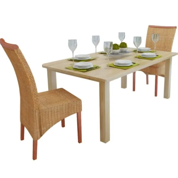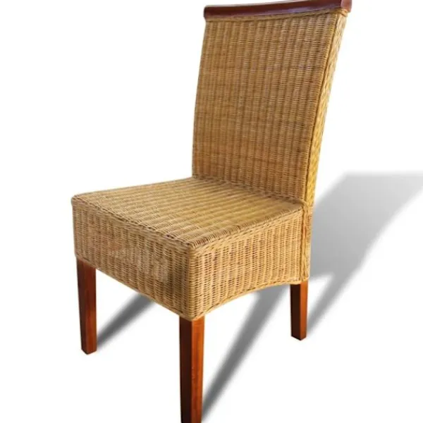 Denna genuina uppsättning matstolar i rotting, med ett tropiskt utseende och känsla, har en dekorativ list i massivt trä och kommer bli ett perfekt tillägg till din inredning. De hårda träramarna och den genuina rottingen gör inte bara stolarna stabila, utan även estetiskt tilltalande.