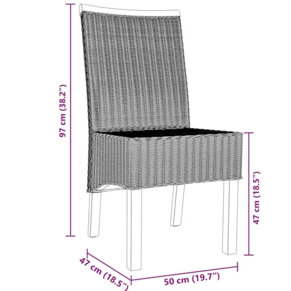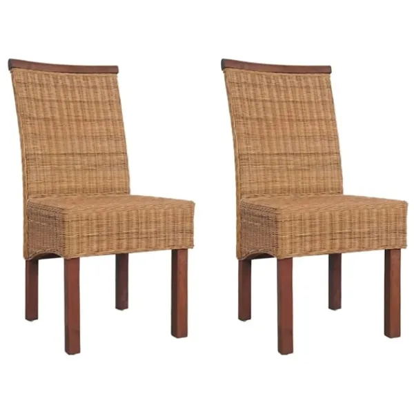 Denna genuina uppsättning matstolar i rotting, med ett tropiskt utseende och känsla, har en dekorativ list i massivt trä och kommer bli ett perfekt tillägg till din inredning. De hårda träramarna och den genuina rottingen gör inte bara stolarna stabila, utan även estetiskt tilltalande. Sitsarna klädda i rotting är väldigt bekväma. Letar du efter stolar som kompletterar din inredning så har du kommit rätt, dessa attraktiva, handvävda stolar kommer vara ett perfekt val. Vänligen notera: Stolarna är handvävda med äkta rotting, och färgerna kan därför variera en aning.
