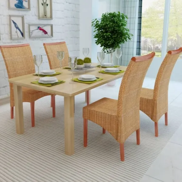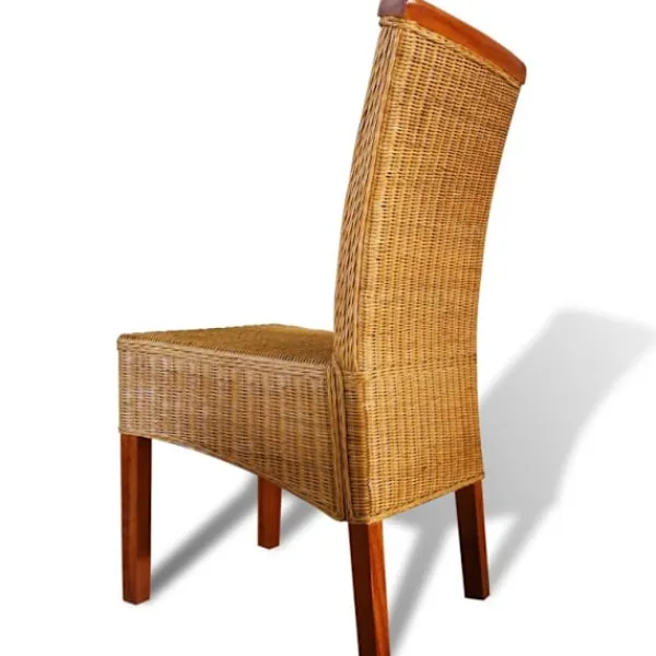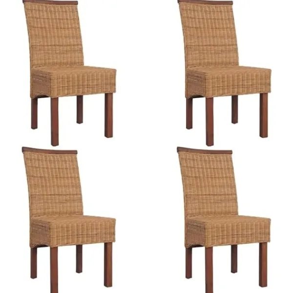 Denna genuina uppsättning matstolar i rotting, med ett tropiskt utseende och känsla, har en dekorativ list i massivt trä och kommer bli ett perfekt tillägg till din inredning. De hårda träramarna och den genuina rottingen gör inte bara stolarna stabila, utan även estetiskt tilltalande. Sitsarna klädda i rotting är väldigt bekväma. Letar du efter stolar som kompletterar din inredning så har du kommit rätt, dessa attraktiva, handvävda stolar kommer vara ett perfekt val. Leveransen inkluderar 4 stolar. Vänligen notera: Stolarna är handvävda med äkta rotting, och färgerna kan därför variera en aning.