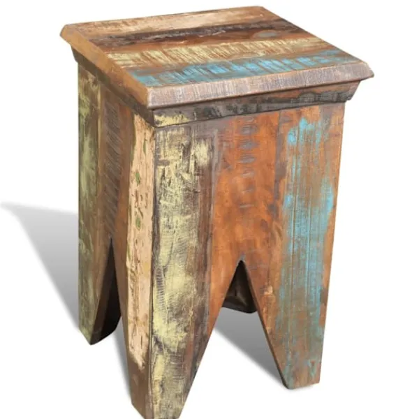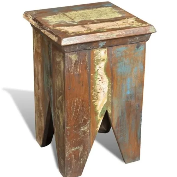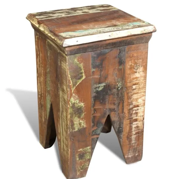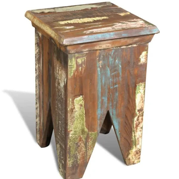 Den här pallen i återvunnet trä ger dig en bekväm sittplats. Den massiva konstruktionen i trä ger den en hög stabilitet medan de naturliga kornmönstren och de olika egenskaperna hos massivt trä gör varje pall unik. De kompakta fyra benen är väldigt stativ. Pallen är tillverkad i återvunnet trä vilket betyder att varje möbel är unik och skiljer sig något från de andra. Möbler tillverkade av återvunnet trä har karaktärsdrag från olika träslag såsom sheesham, teak, palisander, mangoträ, acacia, ädelträ, etc. Återvunnet trä är massivt, stadigt, hållbart och vackert. Spikhål och synlig ådring ger möbeln en historia och bjuder in ännu en generation att genomsyra den med sin alldeles egen sådan. Den här möbeln kommer att visa att du förstår koncept såsom resursskydd, miljöskydd och hållbar utveckling. Dessutom tillför det rena hantverket en spektakulär, exotisk vintagestil till pallen. Varje process för återkombinering, polering, målning och vaxning är omsorgsfullt utförd. Den här återvunna pallen är ett perfekt val för ditt hem och många klassiska kaféer! Viktig anmärkning: Eftersom varje del är handgjord med en unik blandning av återvunnet trä, är varje pall något annorlunda i färg. Leveransen är slumpartad.