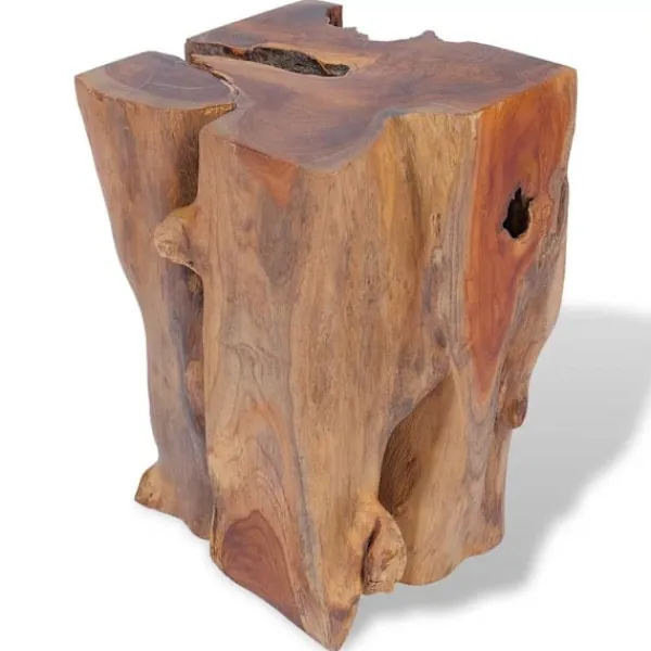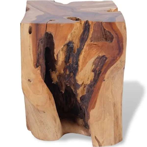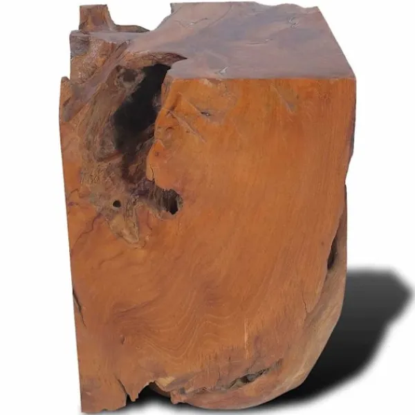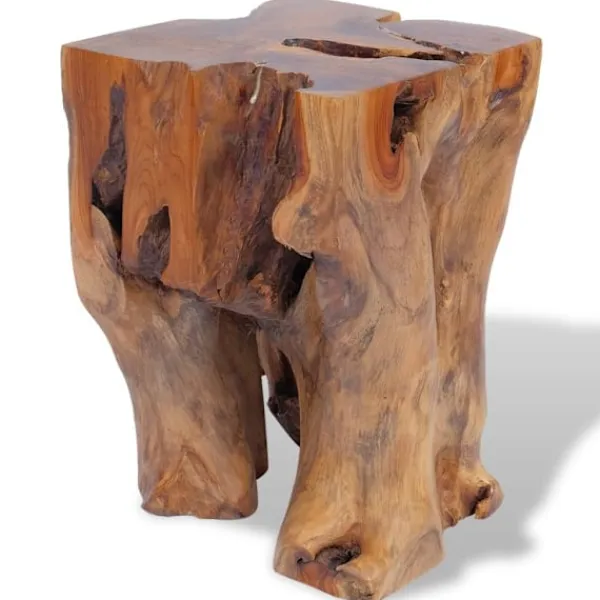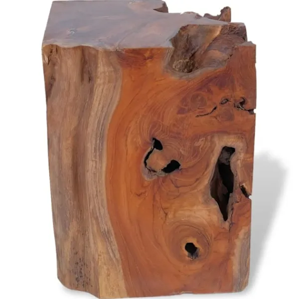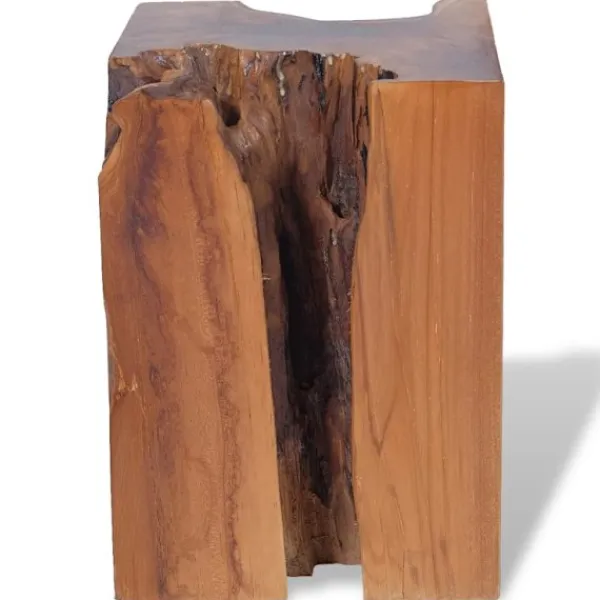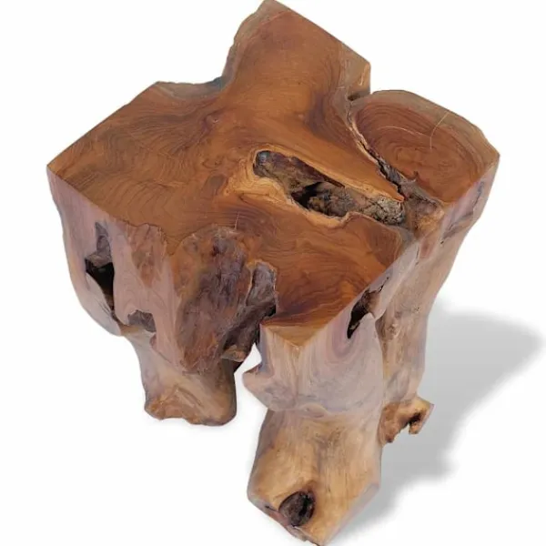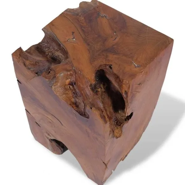 Den här unika pallen, som är tillverkad av en massiv teakstock, utstrålar en rustik charm och blir ett riktigt blickfång. Pallen kan även användas som fotstöd, sidobord med mera. Pallen är helt handgjord och hantverket skapar en spektakulär retro- och naturkänsla. Observera: Eftersom trä är en naturprodukt kan färgerna, ådringsstrukturen och formerna skilja sig något från möbel till möbel, vilket gör att varje pall är unik och skiljer sig från den andra. Leveransen är helt slumpmässig.