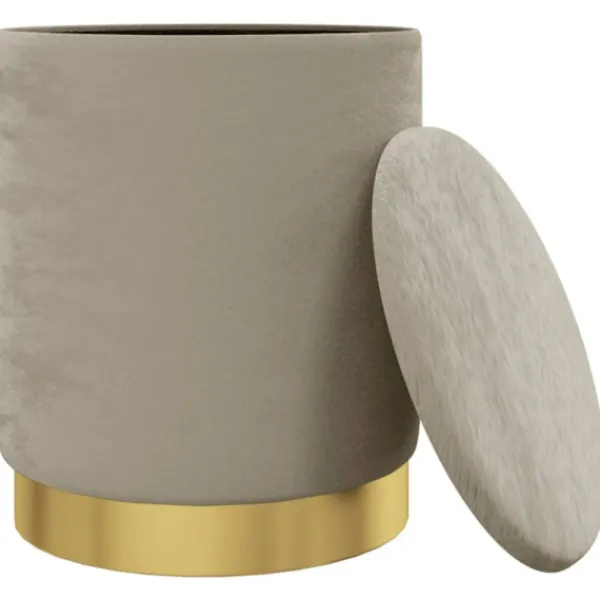 Denna runda pall är klädd i mjuk sammet, den har en klassisk utstrålning och är platsbesparande, vilket bidrar till optimal komfort. Den här moderna pallen har ett lock för praktisk förvaring, och du kan gömma tillbehör och förvara böcker eller tidskrifter. Den glamorösa järnbasen tillför stolens unika skönhet och ger hög stabilitet. Denna pall är ett perfekt komplement till din hall och vardagsrum.