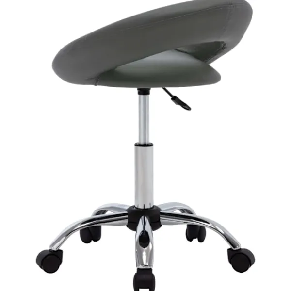 Denna rullbara arbetsstol med modern design är en iögonfallande möbel som ger din produktiva arbetsdag extra komfort. Det vadderade ryggstödet med en böjd design stöder ryggen när du sitter och lutar dig lite på den. Sitsen har en hög komfort, då den varken är för hård eller för mjuk. Den starka förkromade stålramen gör stolen väldigt robust och hållbar. Tack vare den praktiska gaslyftmekanismen kan du justera sitthöjden enligt dina bekvämligheter. Dessutom svänger hjulen i 360 grader, så att du kan flytta den fritt i olika riktningar enligt behov, vilket gör den ideal för tatuerare, skönhetssalonger, kliniker och så vidare.