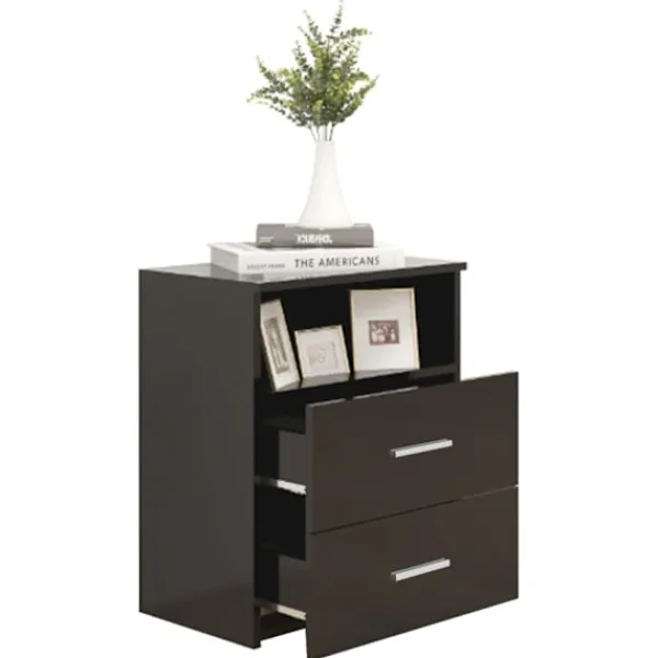 Skapa en modern charm i din inredning med dessa sängbord! Sängborden är stabila och robusta. Dessutom är de utrustade med två lådor och en hylla som ger gott om förvaringsutrymme för att hålla dina saker väl organiserade och inom räckhåll. De är lätta att rengöra med en fuktig trasa.