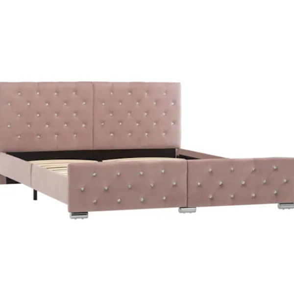 Den utmärks av sin diskreta men ändå eleganta design, och utstrålar en känsla av elegant charm i ditt sovrum. Denna sängram är tillverkad av trä och stål som är extremt robust och hållbart. Metallfötterna bidrar till extra hållbarhet. Sängen är dessutom klädd i slitstarkt sammet, som utstrålar en inbjudande känsla och är lätt att rengöra. Denna sängram är lämplig för en madrass som mäter 160 x 200 cm.