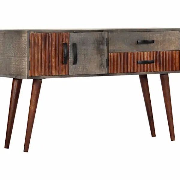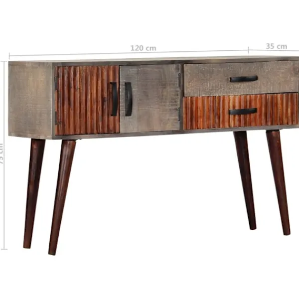 Skapa en elegant känsla i din inredning med vårt klassiska avlastningsbord i trä! Det är tillverkat av massivt mangoträ och blir ett fint tillskott i din inredning. Bordet är tillverkat av massivt grovt mangoträ och har en robust bordsskiva där du kan ställa dekorativa föremål som fruktskålar eller vaser. Robusta ben garanterar stabilitet och hållbarhet för en lång livslängd. Mangoträ är ett kompakt och robust lövträ som har vackra ådringar och konturer i brunt och guld. Varje steg i processen utförs med största omsorg, vare sig det är polering, målning eller lackering. Dess 2 dörrar och 2 lådor har gott om plats för att hålla olika småsaker organiserade och inom räckhåll. OBS: Färgerna varierar på möblerna vilket gör varje möbel unik. Leveransen är helt slumpmässig.