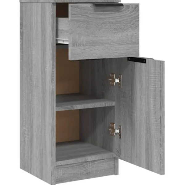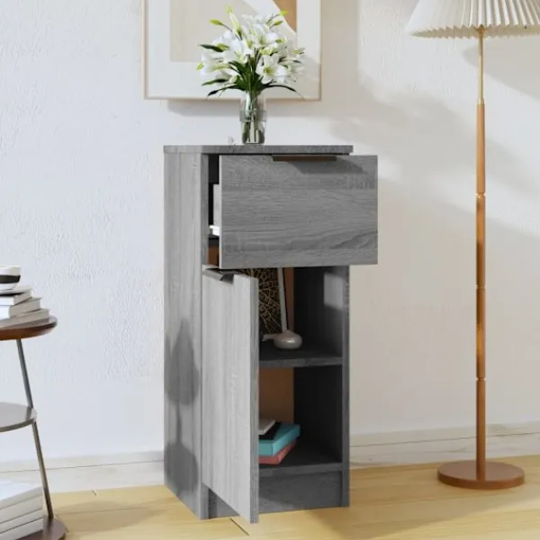 Denna skänk med minimalistisk charm kommer att uppfylla dina olika behov och är perfekt att ha i alla sorters rum. Praktiskt material: Det konstruerade träet är av exceptionell kvalitet med slät yta och har också styrka, stabilitet samt fuktbeständighet.Rymlig förvaring: Skåpet har 2 fack och en låda med gott om förvaringsutrymme. Du kan hålla dina böcker, multimediaapparater och andra föremål inom räckhåll.Visningsfunktion: Den robusta ovansidan är ideal för att visa dekorativa föremål, fotoramar eller krukväxter på.Bred tillämpning: Det mångsidiga förvaringsskåpet kan uppfylla dina olika krav för det kan också användas som sängbord. Varning:För att förhindra att den välter måste denna produkt användas med den medföljande monteringsanordningen för vägg Observera:Varje produkt levereras med en monteringsmanual i lådan för enkel montering.