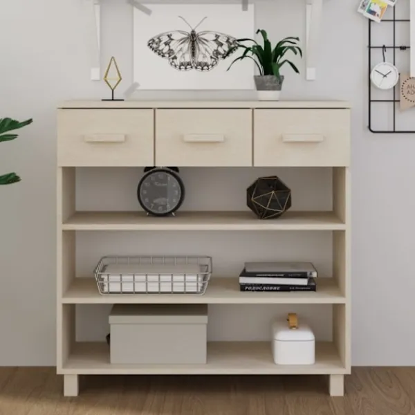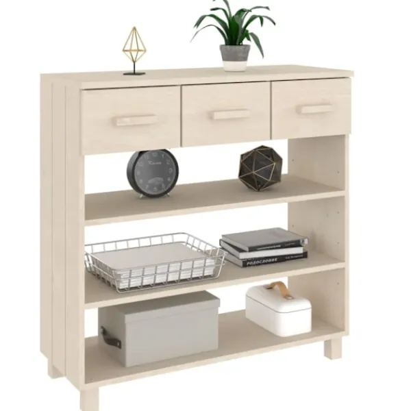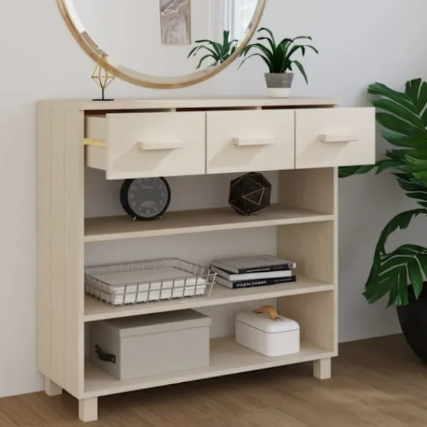Konsolbordet är tillverkat av massivt furu, vilket gör det hållbart och robust. Det har 3 dörrar och 3 lådor med gott om förvaringsutrymme för att hålla dagliga väsentligheter organiserade och inom räckhåll. Dessutom är den robusta bordsskivan perfekt för att visa upp dekorativa föremål, fotoramar och krukväxter.