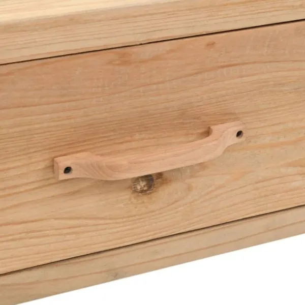 Konsolbordet i trä med retro stil utstrålar en rustik charm som gör den till ett dekorativt tillägg i ditt vardagsrum. Detta högst stabila och hållbara sidobord är tillverkat i massivt granträ. Den robusta ovansidan är en perfekt plats att ställa fruktkorgar, vaser eller andra dekorativa föremål på. Lådorna har gott om utrymme för att hålla dina olika föremål prydligt organiserade. Den unika designen på lådfronterna bidrar till bordets vintage stil. Monteringen är enkel.