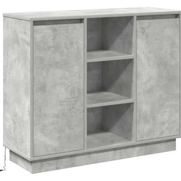 - Ingår komponenter: Sidobordet kommer med flera platta, släta dörrar som håller allt snyggt och städat. Hyllorna ger en stabil plats för alla dina köksgrejer eller småprylar, vilket visar på dess mångsidighet. LED-remsorna ger elegant belysning och lyfter fram vad som finns inuti.