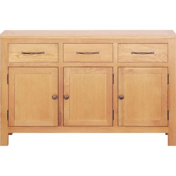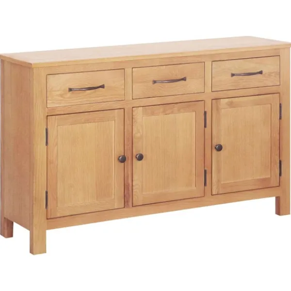 Denna buffé erbjuder den perfekta mixen av stil och funktion, perfekt för både förvaring och servering. Den klassiska designen ger en touch av elegans, så den passar perfekt i hemmet. Den släta ytan och jordnära färgen är både snygga och skapar en varm atmosfär. Massiv ek konstruktion: Buffén är gjord av förstklassig massiv ek, vilket gör att den håller länge och ser bra ut i din matsal. Den tål det dagliga slitet och ger en tidlös charm. Funktionell förvaring: Tre rymliga lådor och dörrar ger mer än nog med plats för att organisera dina matsalsartiklar, som servetter, bestick och serveringsfat, så ditt utrymme hålls snyggt. Traditionell känsla: Buffén har klassiska detaljer som knopp-handtag och en fin brun finish, vilket ger en lyxig och traditionell atmosfär. Mångsidig design: Den rektangulära formen och släta texturen gör den lätt att anpassa i olika matsalsmiljöer. Buffén erbjuder inte bara förvaring, den är också ett stilfullt inslag i din inredning. Lätt underhåll: Det är enkelt att hålla buffén fin, rengör bara med en torr trasa och undvik vax eller silikonbaserade produkter för att skydda den lackerade ytan.