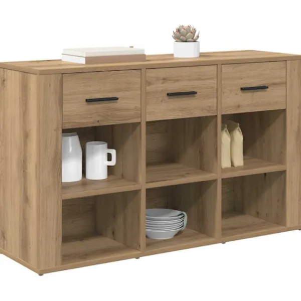 Det här skåpet är både stiligt och praktiskt. Det kombinerar rustik charm med smarta förvaringslösningar, vilket skapar en grym möbel för ditt vardagsrum eller matsal. Byggt av konstruerat trä, passar dess texturerade yta och naturliga färger perfekt med all din inredning, och det finns gott om plats för att förvara och visa dina favoritsaker.