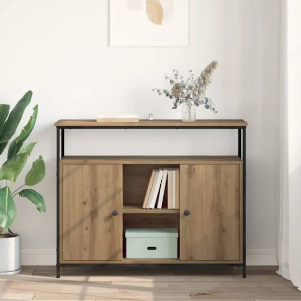 - Inkluderade komponenter: Sideboardet har hyllor av konstruerat trä för effektiv förvaring. Dörrarna är lätta att öppna och stänga för smidig åtkomst till det som förvaras. Robusta ben ger stabilitet och minimerar risken för att det välter.