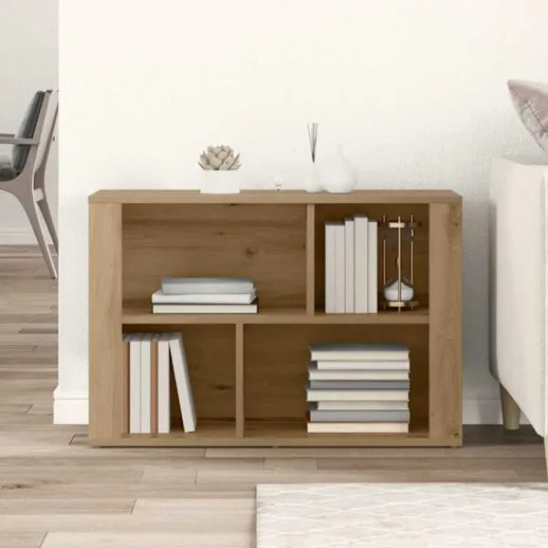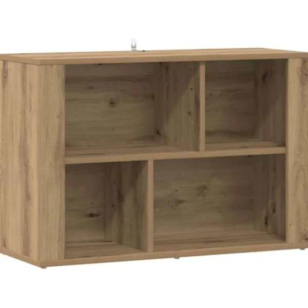 Detta sidobord i konstruerat trä har en härlig rustik stil som passar perfekt i vardagsrummet. Den rektangulära formen ger gott om förvaring för olika prylar, vilket gör det både praktiskt och snyggt.