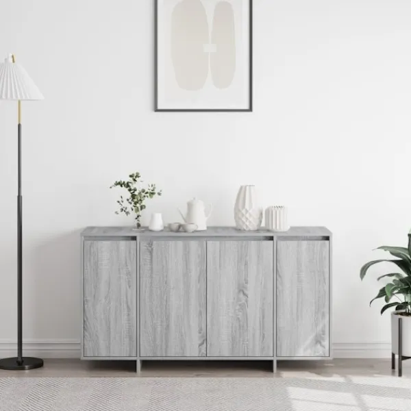 - Material: Skåpet är helt i konstruerat trä, vilket ger en sammanhållen look som passar med modern inredning. Det här materialet gör skåpet hållbart och starkt, perfekt för dina lagringsbehov, utan att ge avkall på stilen.