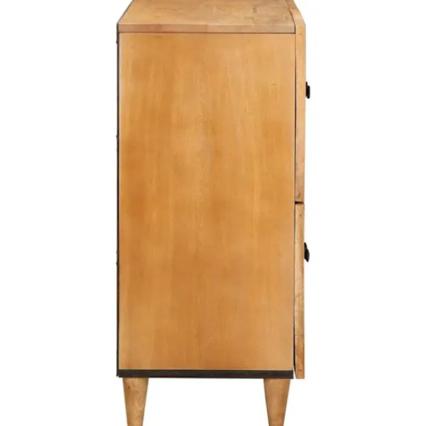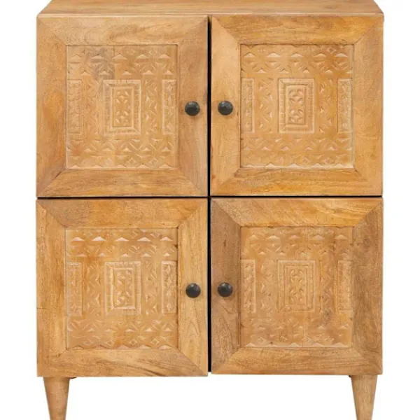 - Material: Tillverkat av högkvalitativt massivt mangoträ, vilket framhäver den naturliga ådringen och texturen, och ger en varm och organisk känsla. Det konstruerade träet förser skåpet med stabilitet och gör det motståndskraftigt mot klimatförändringar, perfekt för alla hem.