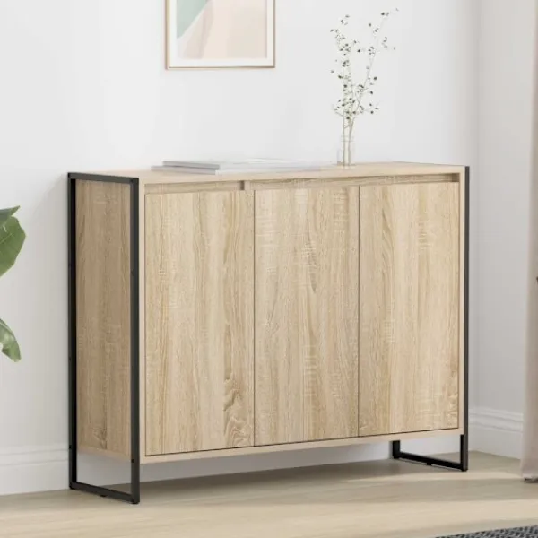 Detta stiliga industriella sidoskåp är gjort för att passa in i moderna vardagsrum och har både funktionella och snygga egenskaper. Tillverkat av högkvalitativt konstruerat trä visar det på riktigt fint hantverk, där stil och funktion går hand i hand för att ge rummet en fräsch och organiserad känsla.