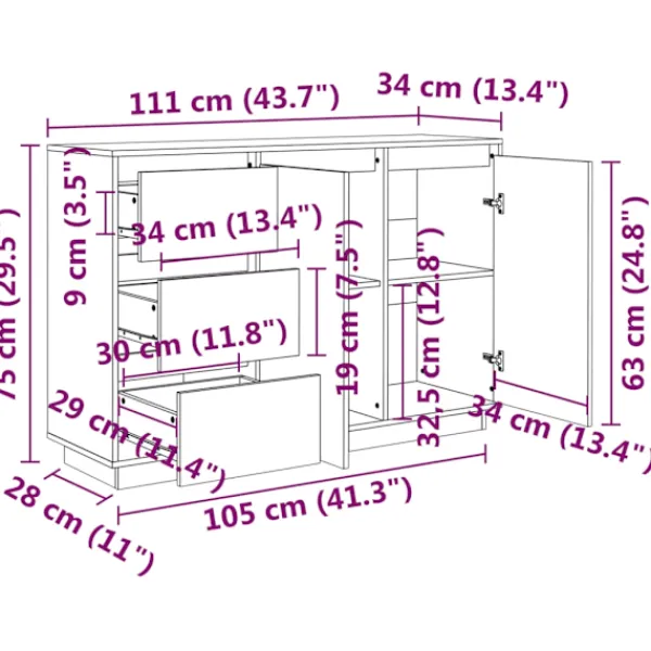 - Mått: 111 x 34 x 75 cm (B x D x H)