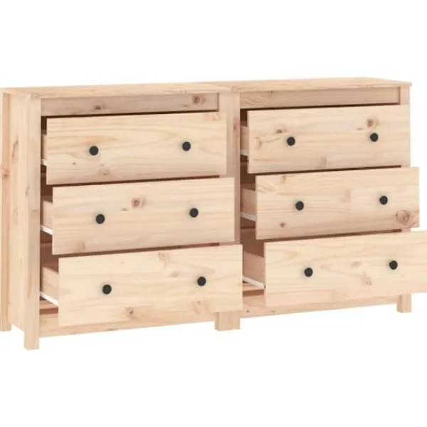 Njut av ett organiserat vardagsrum med denna skänk i trä! Denna praktiska skänk kommer att uppfylla dina olika behov och är perfekt att ha i alla sorters rum. Massivt furuträ: Massivt furuträ är ett vackert naturmaterial. Furuträ har raka fibrer, och knutarna ger materialet sin rustika utstrålning.Gott om förvaring: Skåpet har gott om förvaringsutrymme för att hålla dina olika saker välorganiserade och inom räckhåll.Robust ovansida: Dess robusta ovansida är perfekt för att ställa dekorativa föremål, fotoramar eller krukväxter på. Varning:För att förhindra att den välter måste denna produkt användas med den medföljande monteringsanordningen för vägg Observera:Varje produkt levereras med en monteringsmanual i lådan för enkel montering.Skänken består av två små skänkar.