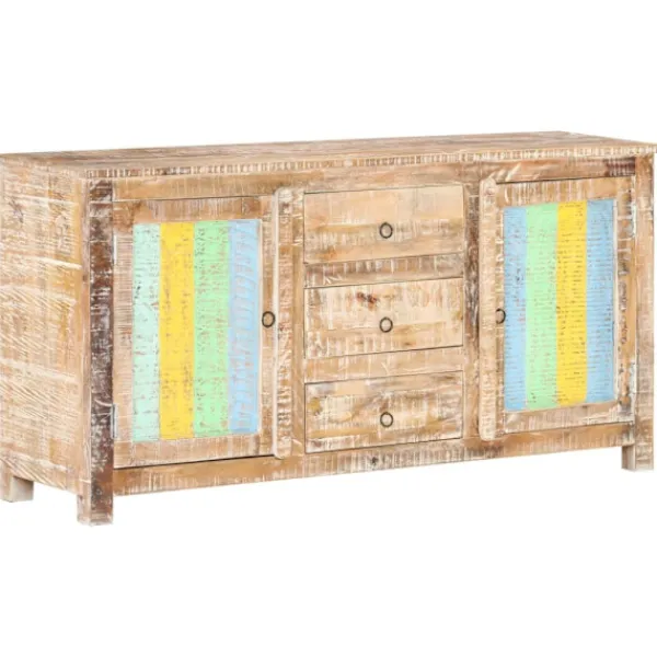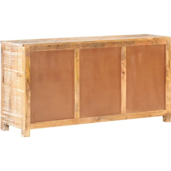 Skänken är tillverkad av grovt akaciaträ, vilket gör den stabil och hållbar. Hantverksskickligheten och de vackra träådringarna gör varje möbel unik och lite annorlunda från nästa. Detta skåp har också 2 dörrar och 3 lådor, med gott om lagringsutrymme för att förvara dina viktiga saker organiserat och inom räckhåll.