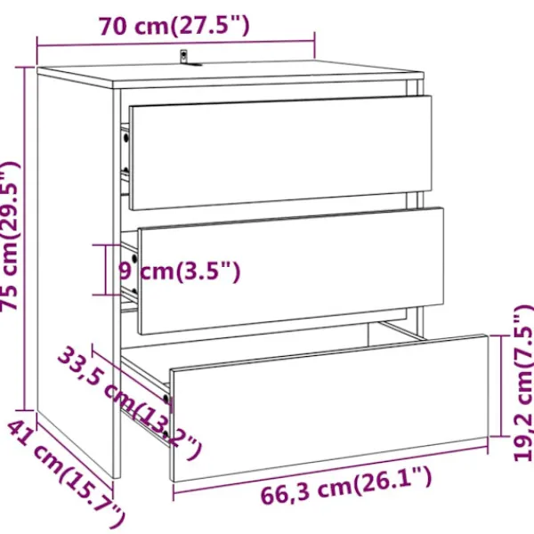 - Mått skänk med lådor: 70 x 41 x 75 cm (B x D x H)