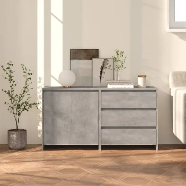 Dessa sidobord blir ett dekorativt såväl som praktiskt komplement till din befintliga inredning. Dessa sidoskåp har gott om förvaringsutrymme för att hålla dina dagliga nödvändigheter organiserade och inom räckhåll. Den stadiga bordsytan är perfekt för dekorativa objekt såsom inramade foton, krukväxter eller en vas. Dessutom är dessa förvaringsskänkar enkla att rengöra med en fuktig trasa.