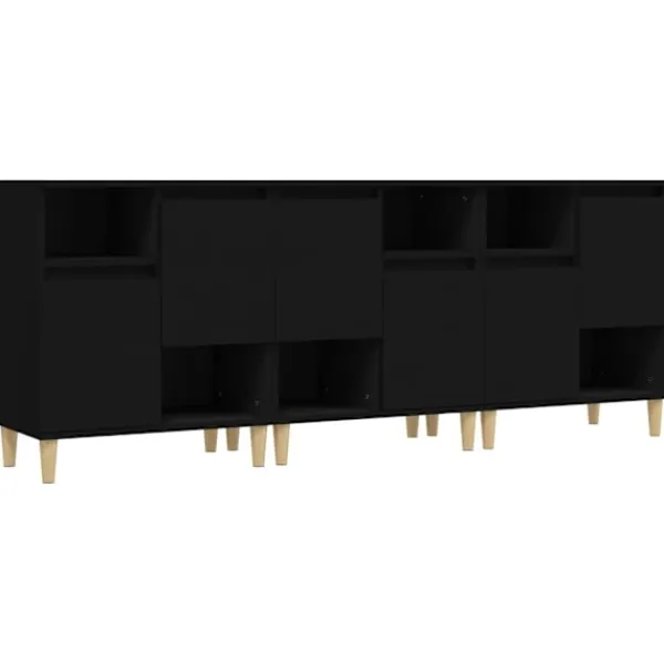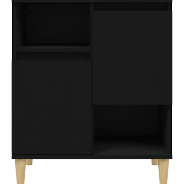 Dessa trendiga skänkar, med en elegant och klassisk design, är tänkt att uppgradera din interiör till nästa nivå. Hållbart material: Det konstruerade träet är av exceptionell kvalitet med slät yta och är också starkt, stabilt och fuktbeständigt. Skåpet är tillverkad av konstruerat trä och är lätt att rengöra med en fuktig trasa.Gott om förvaringsutrymme: Denna skänk har 4 lådor och 2 dörrar, med gott om lagringsutrymme för att hålla dina tidskrifter, böcker, DVD-skivor, multimediaenheter och andra nödvändigheter välorganiserade och inom räckhåll.Träben: Benen i massivt eukalyptusträ ger sidobordet ett naturligt och trevligt utseende samtidigt som det står stabilt.Visningsfunktion: Den robusta ovansidan är perfekt för krukväxter, inramade foton och andra dekorativa föremål. Bra att känna till:Skåpdörrarna kan monteras på två sätt. Varning:För att förhindra att den välter måste denna produkt användas tillsammans med det medföljande väggfästet.